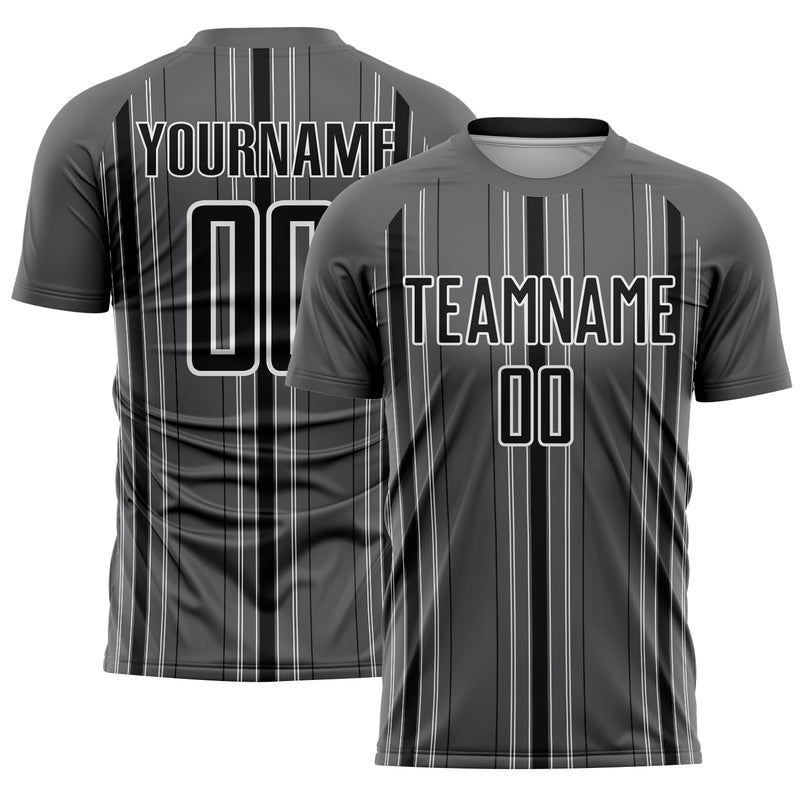 Custom Steel Gray Black-White Stripe Sublimation Soccer Uniform Jersey