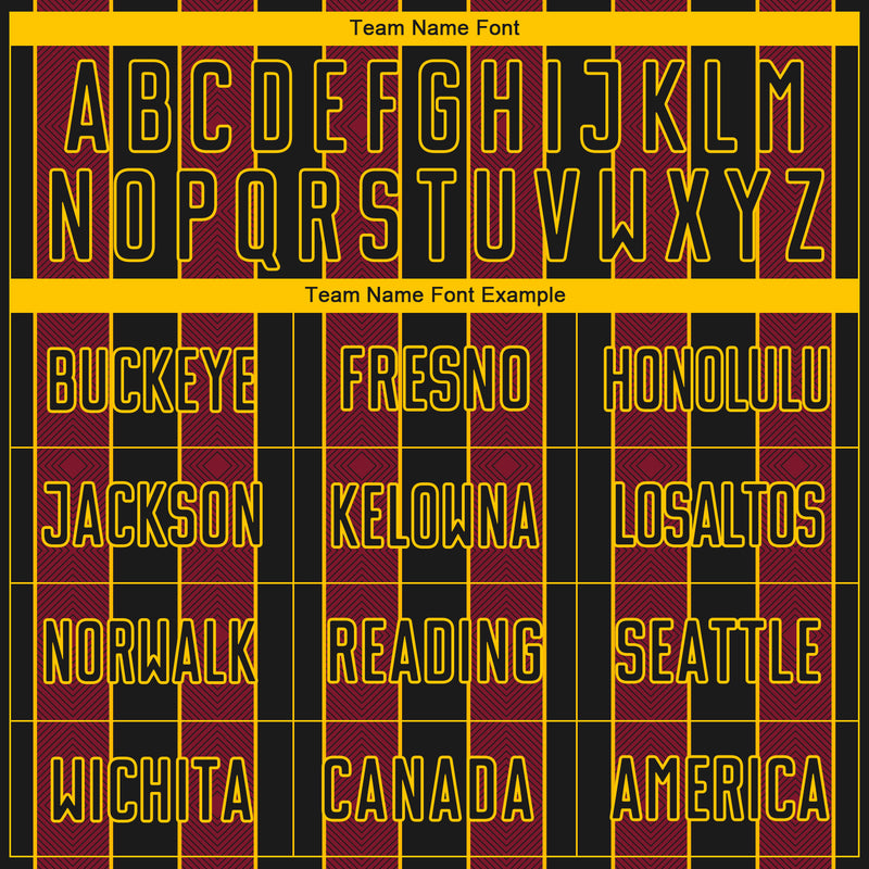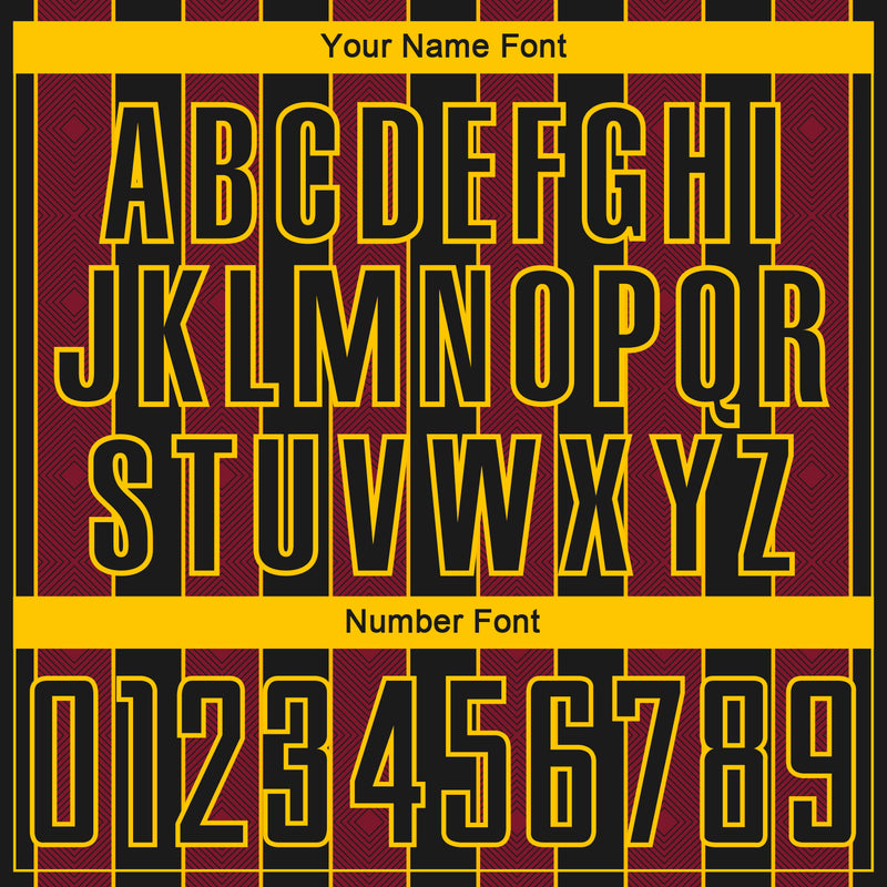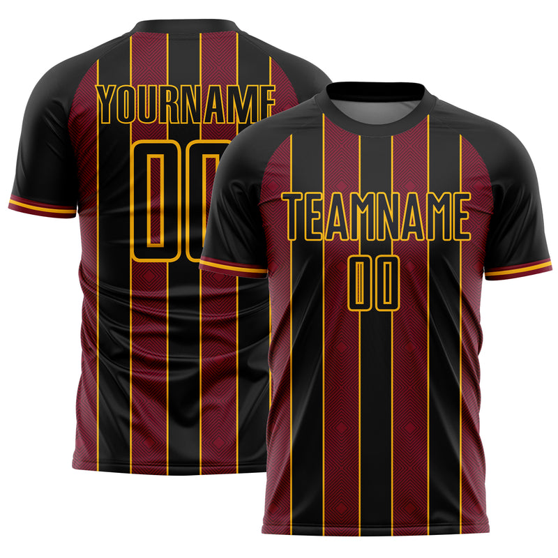 Custom Black Crimson-Gold Pinstripe Line Sports Sublimation Soccer Uniform Jersey