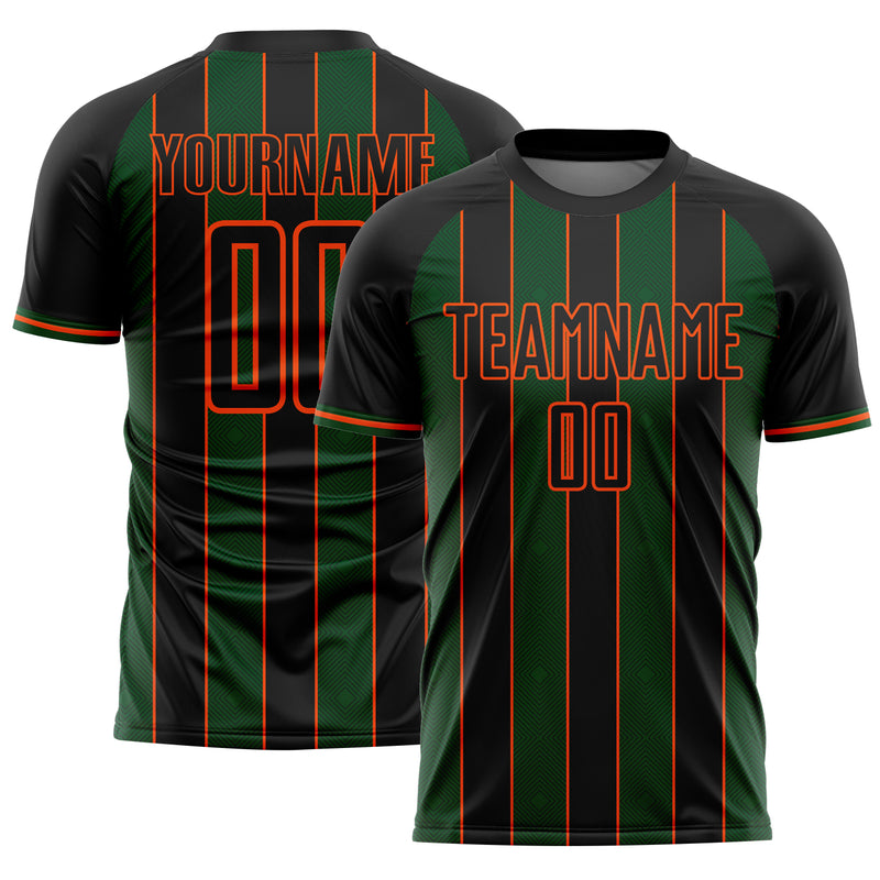 Custom Black Green-Orange Pinstripe Line Sports Sublimation Soccer Uniform Jersey
