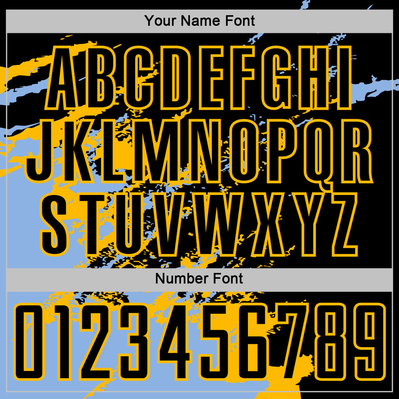 Custom Black Light Blue-Gold Abstract Fragment Art Splash Sports Sublimation Soccer Uniform Jersey