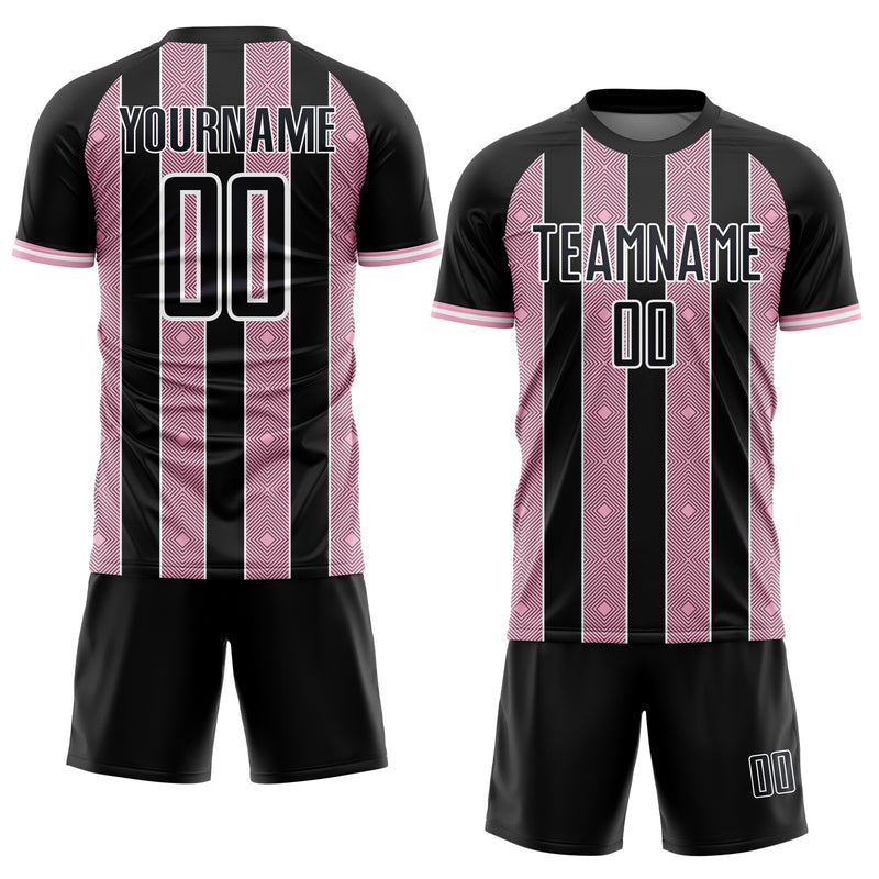 Custom Black Light Pink-White Pinstripe Line Sports Sublimation Soccer Uniform Jersey