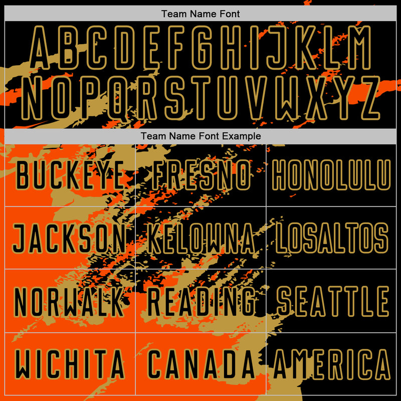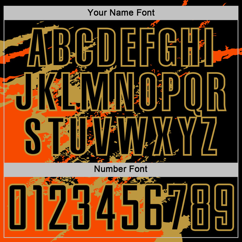 Custom Black Orange-Old Gold Abstract Fragment Art Splash Sports Sublimation Soccer Uniform Jersey