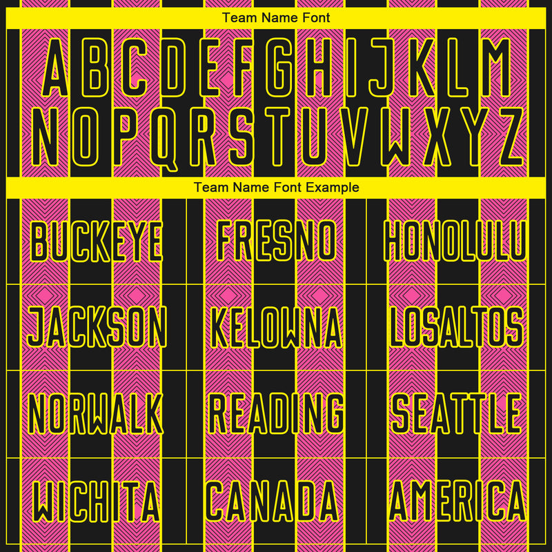 Custom Black Pink-Light Yellow Pinstripe Line Sports Sublimation Soccer Uniform Jersey