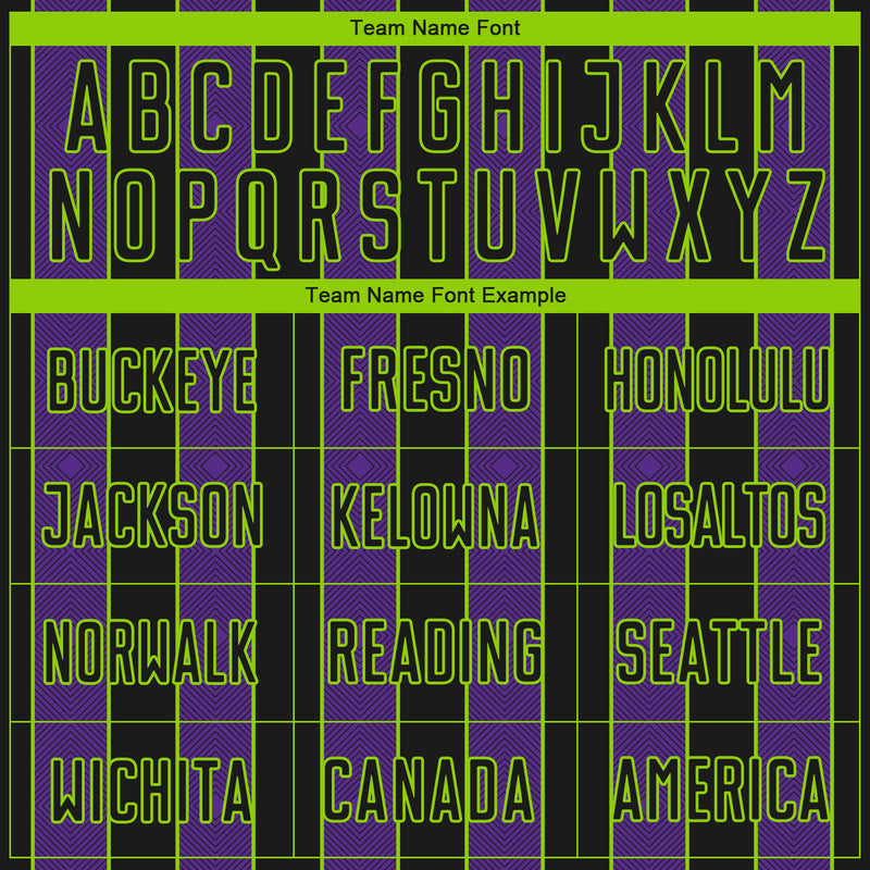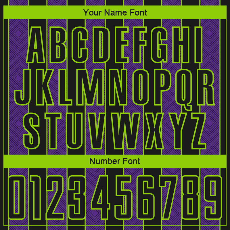 Custom Black Purple-Neon Green Pinstripe Line Sports Sublimation Soccer Uniform Jersey
