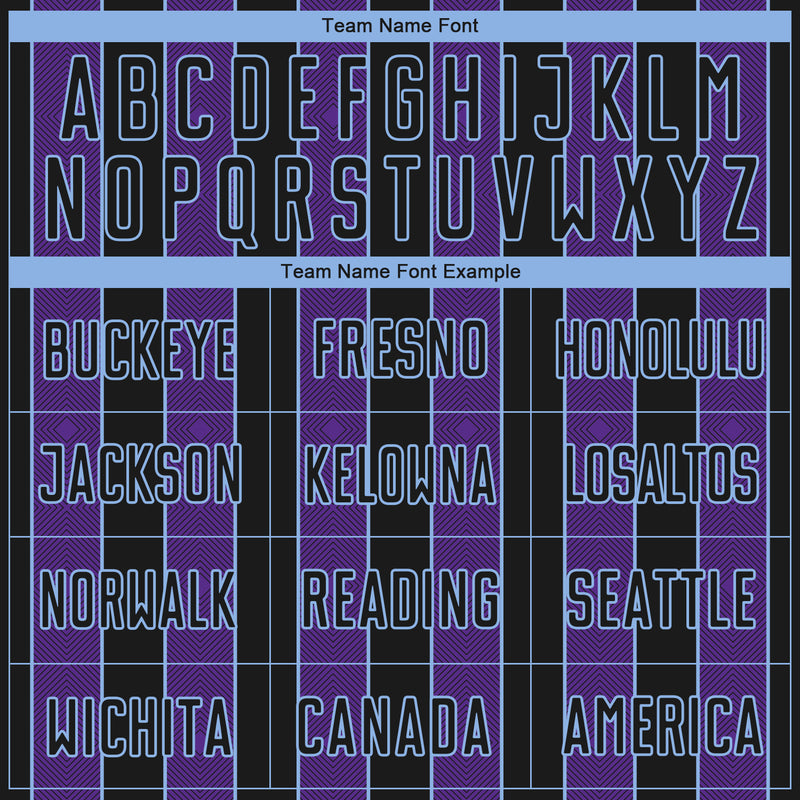 Custom Black Purple-Light Blue Pinstripe Line Sports Sublimation Soccer Uniform Jersey