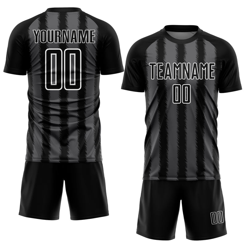 Custom Black Steel Gray-White Line Sublimation Soccer Uniform Jersey