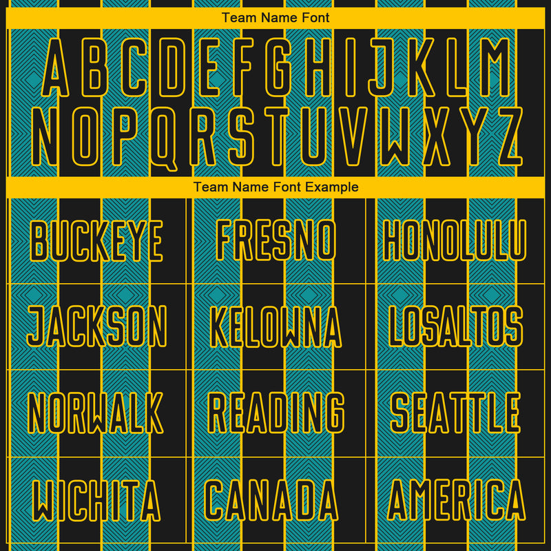 Custom Black Teal-Yellow Pinstripe Line Sports Sublimation Soccer Uniform Jersey