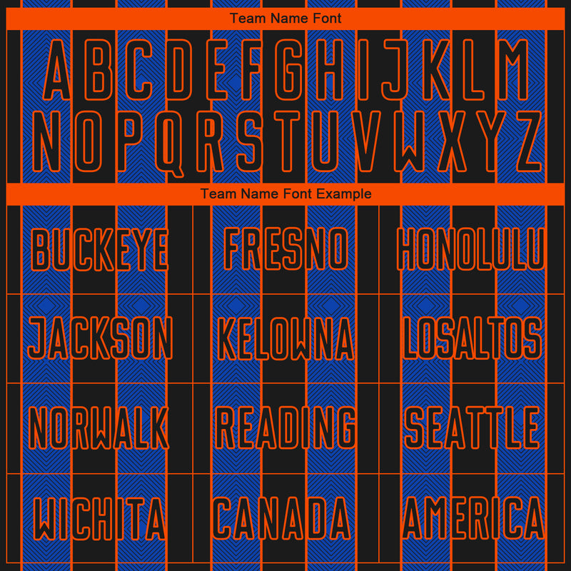 Custom Black Thunder Blue-Orange Pinstripe Line Sports Sublimation Soccer Uniform Jersey