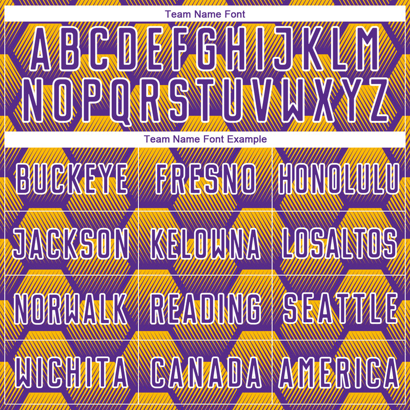 Custom Purple Gold-White Hexagons Pattern Sublimation Soccer Uniform Jersey
