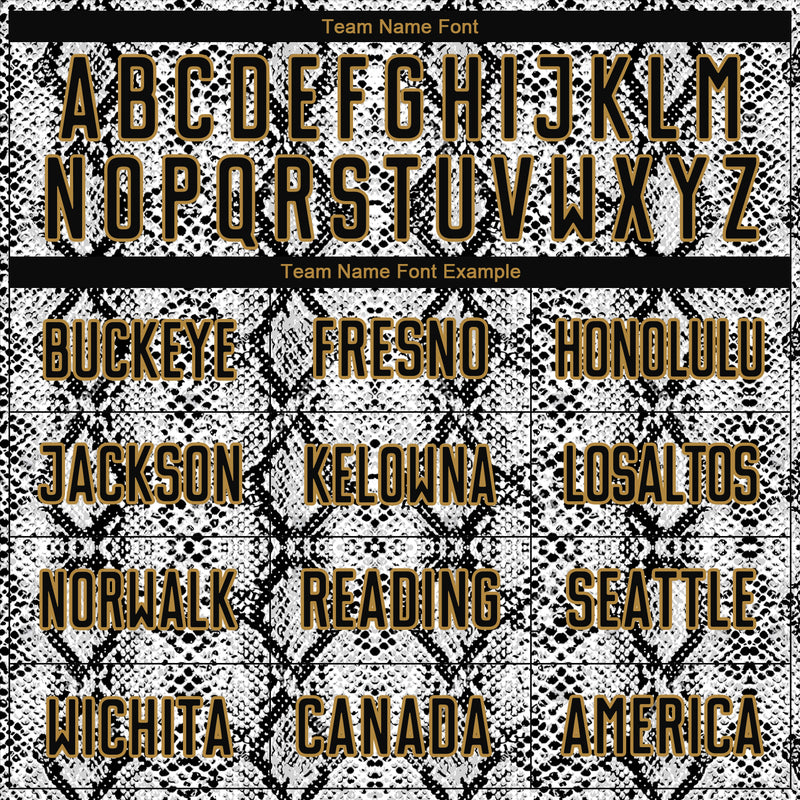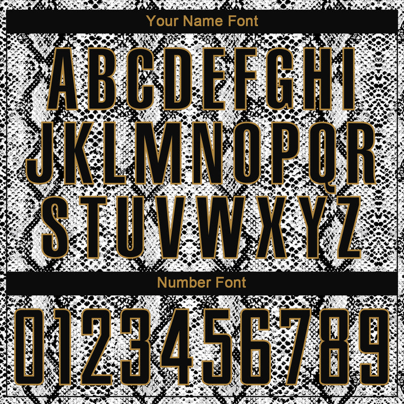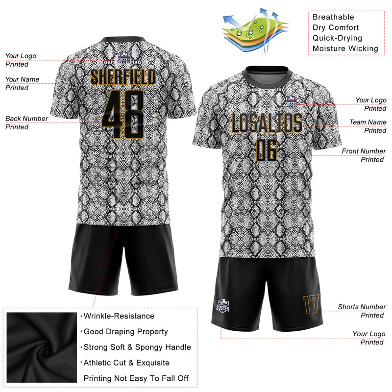 Custom Black Black-Old Gold Sublimation Snakeskin Soccer Uniform Jersey