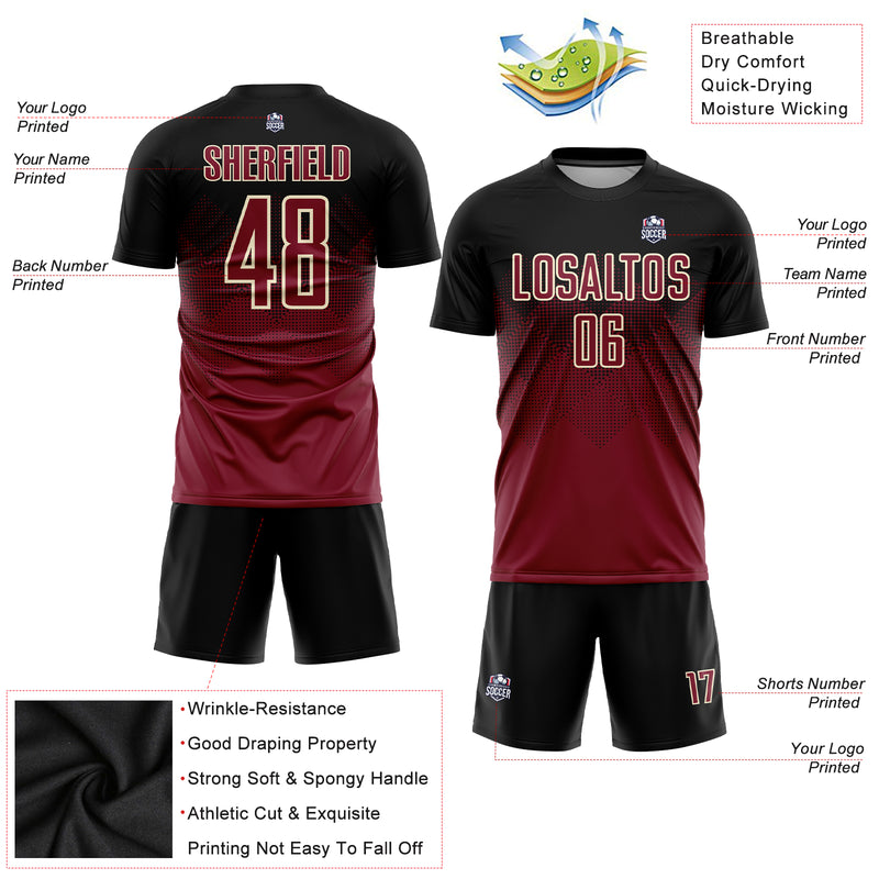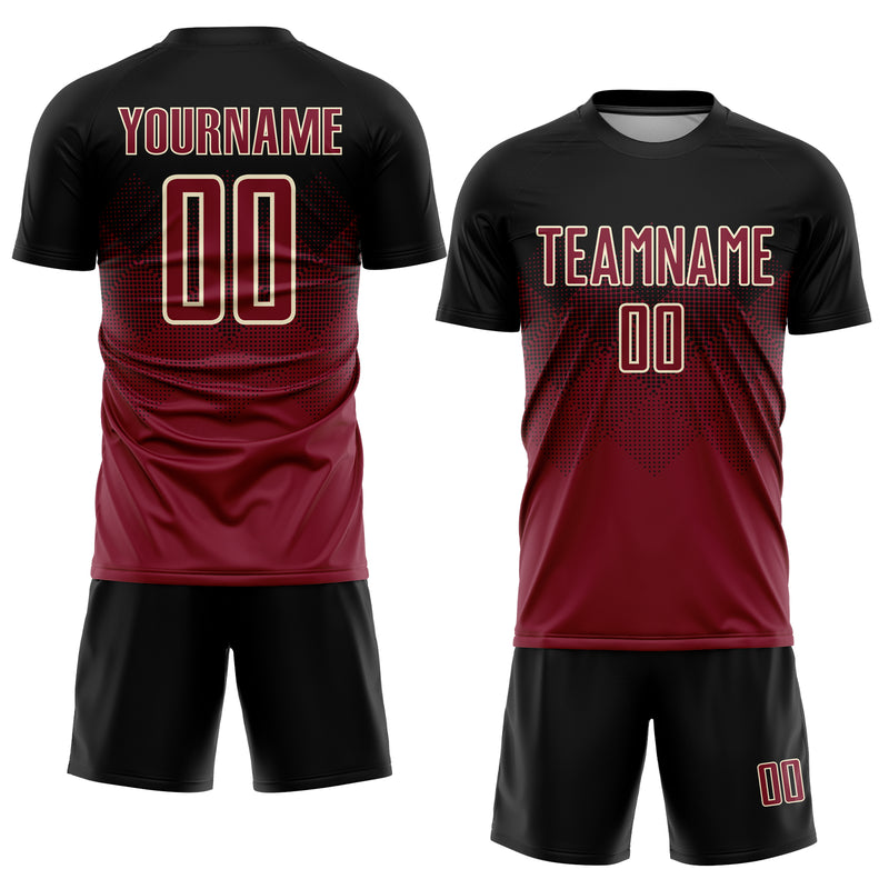 Custom Black Crimson-Cream Sublimation Soccer Uniform Jersey