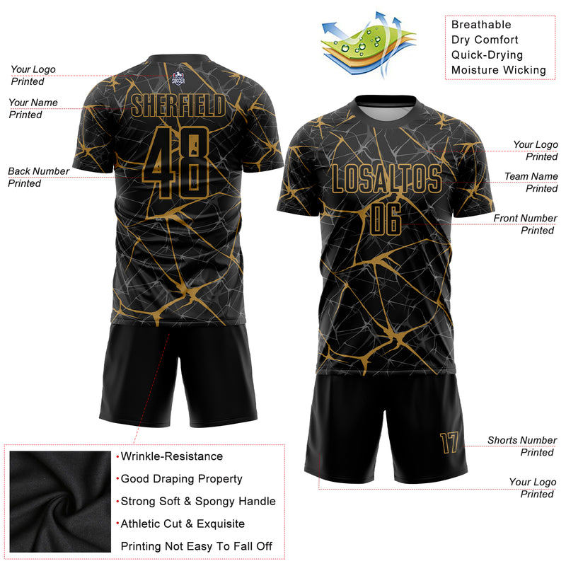 Custom Black Old Gold Sublimation Soccer Uniform Jersey