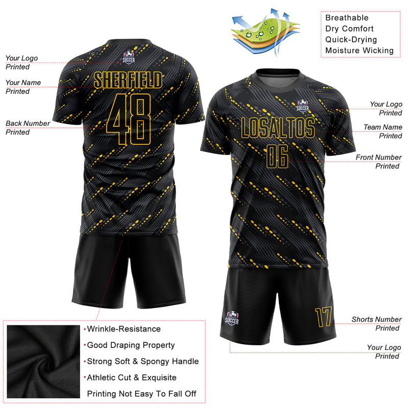 Custom Black Black-Gold Sublimation Soccer Uniform Jersey