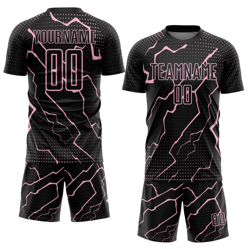 Custom Black Light Pink Lightning Sports Sublimation Soccer Uniform Jersey