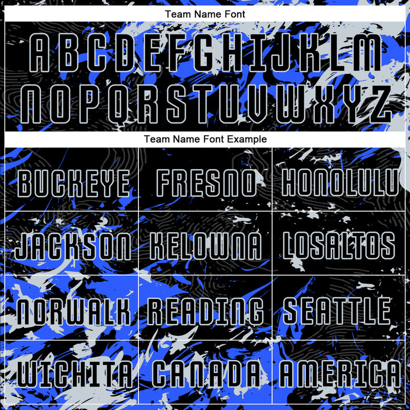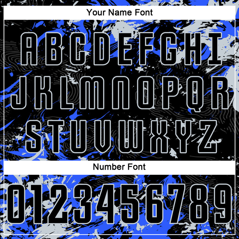 Custom Black Silver-Royal Fluid Art Splash Sublimation Soccer Uniform Jersey