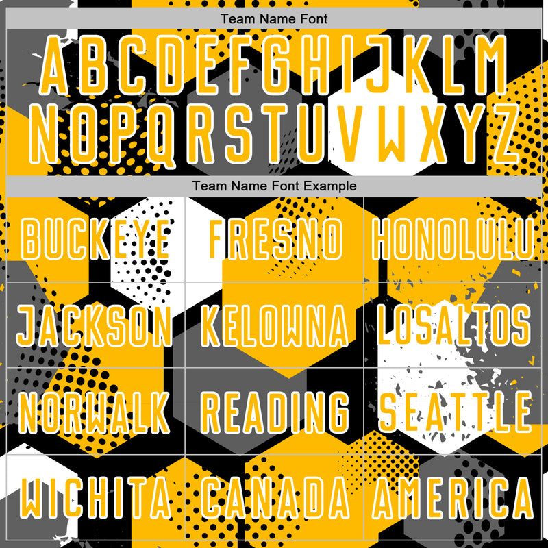 Custom Black Gold-White Geometric Shape Sublimation Soccer Uniform Jersey