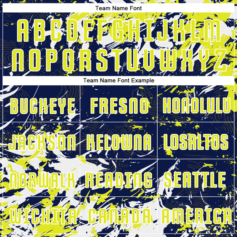 Custom Navy Neon Yellow-White Fluid Art Splash Sublimation Soccer Uniform Jersey