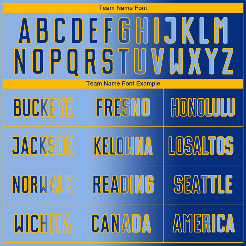 Custom Royal Light Blue-Gold Sublimation Gradient Fashion Soccer Uniform Jersey