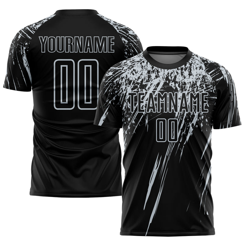 Custom Black Silver Sublimation Soccer Uniform Jersey