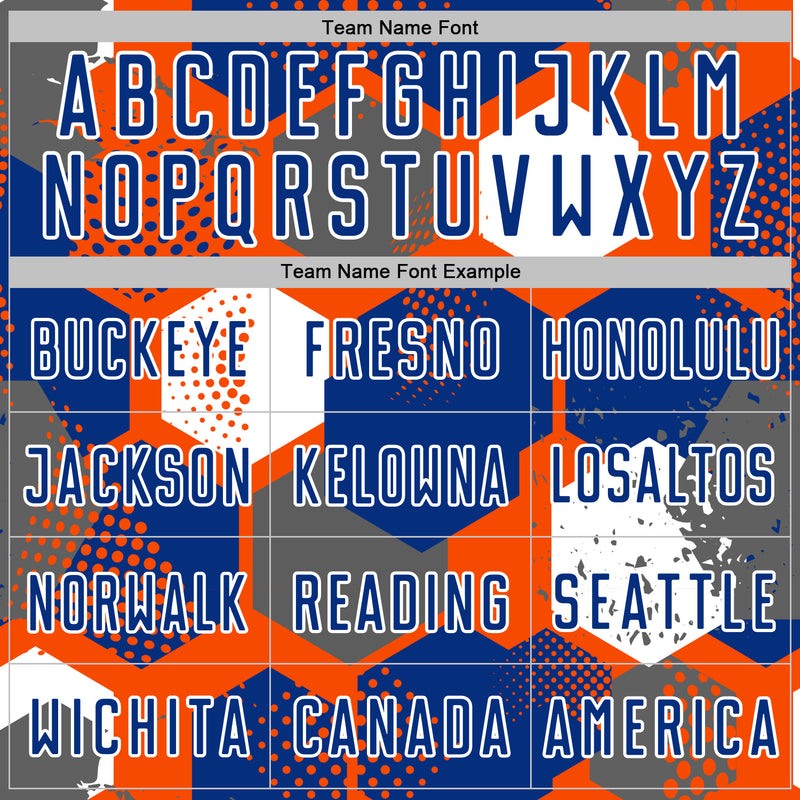 Custom Orange Royal-White Geometric Shape Sublimation Soccer Uniform Jersey