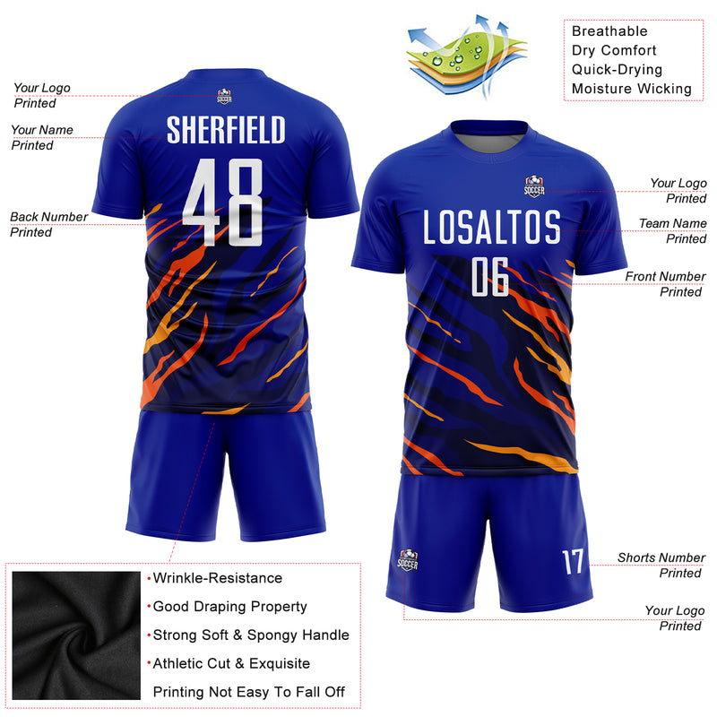 Custom Royal White Yellow-Black Sublimation Soccer Uniform Jersey