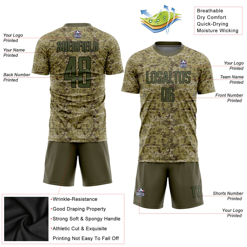 Custom Camo Olive-Black Sublimation Salute To Service Soccer Uniform Jersey