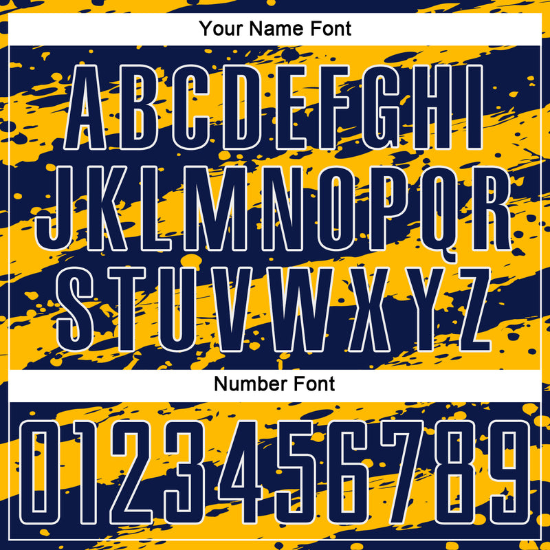 Custom Navy Gold-White Splash Sublimation Soccer Uniform Jersey