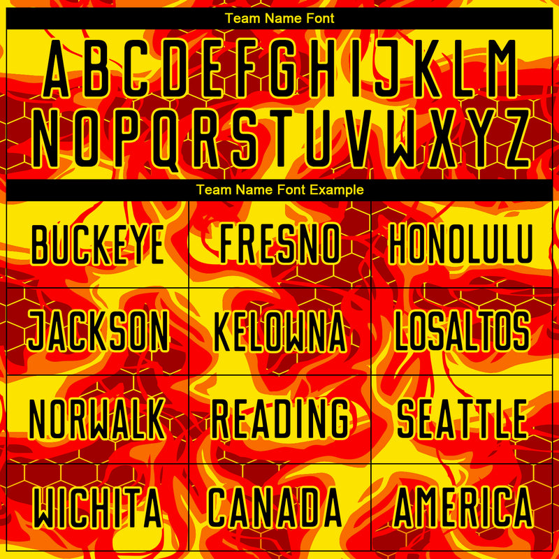 Custom Red Black-Light Yellow Flame Sublimation Soccer Uniform Jersey