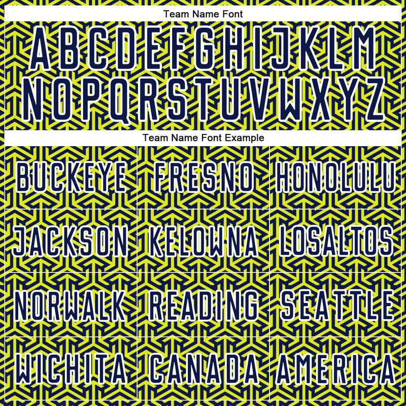 Custom Navy Neon Yellow-White Geometric Arrow Sublimation Soccer Uniform Jersey