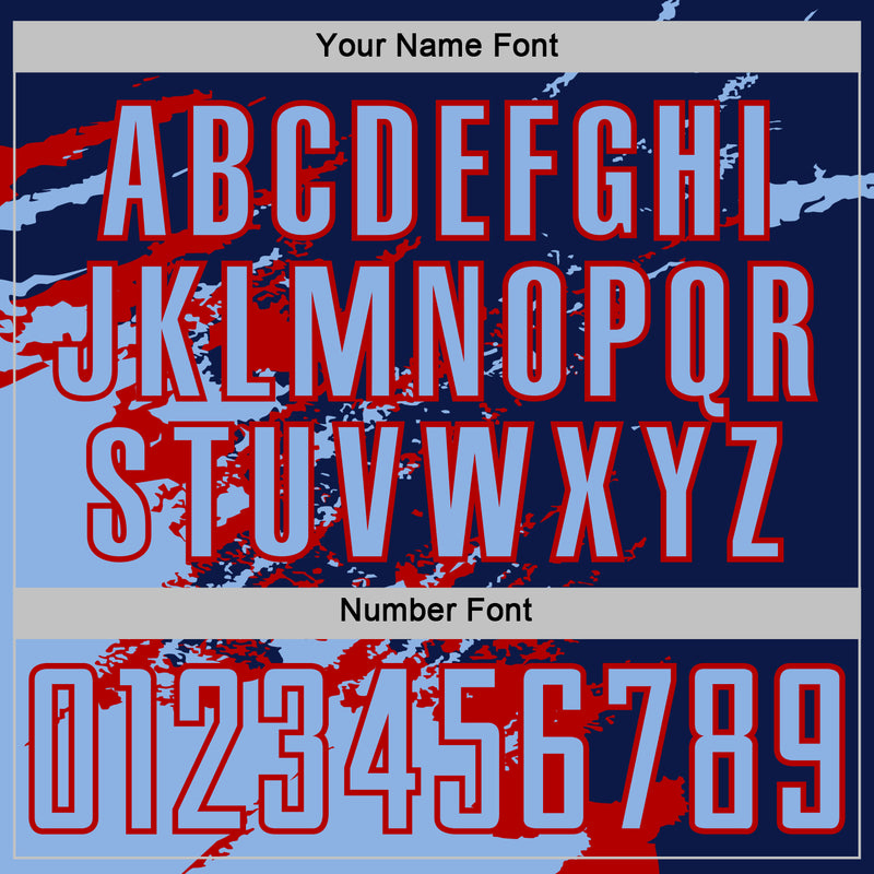Custom Navy Light Blue-Red Abstract Fragment Art Splash Sports Sublimation Soccer Uniform Jersey