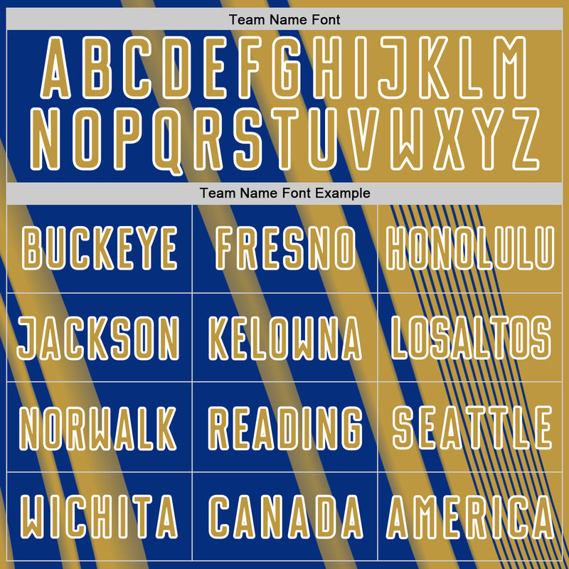 Custom Old Gold Royal-White Lines Sports Sublimation Soccer Uniform Jersey