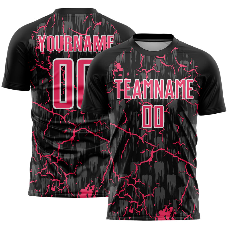 Custom Black Neon Pink-White Lightning Sublimation Soccer Uniform Jersey