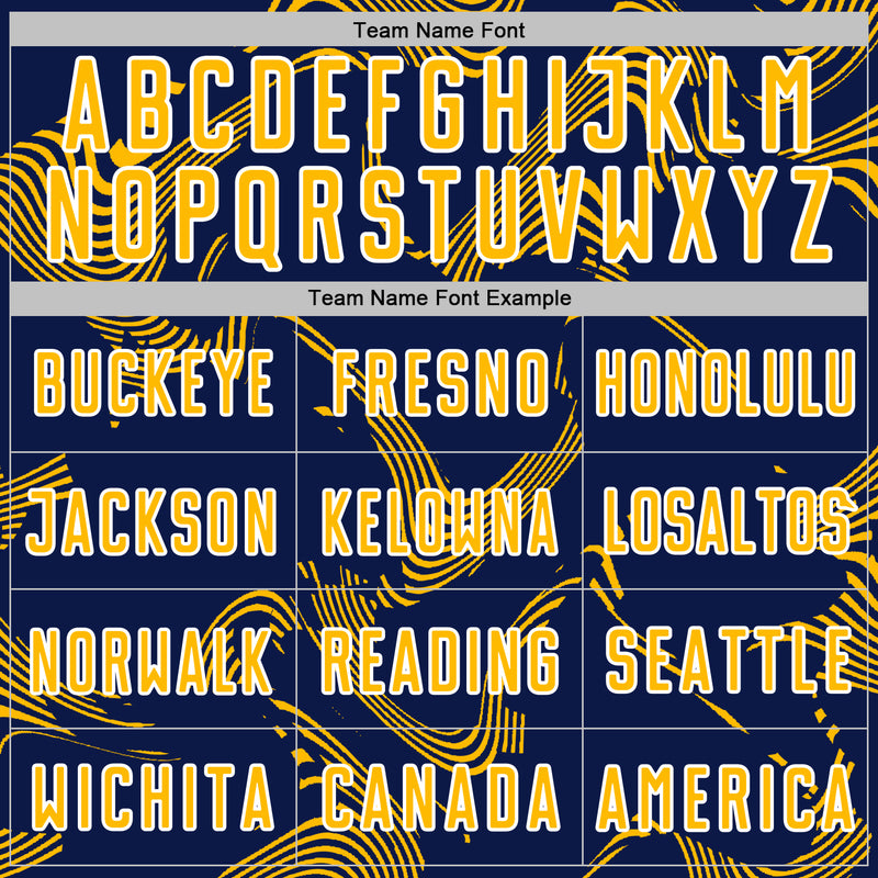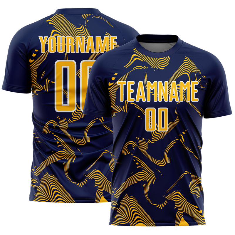 Custom Navy Gold-White Curve Lines Sports Sublimation Soccer Uniform Jersey