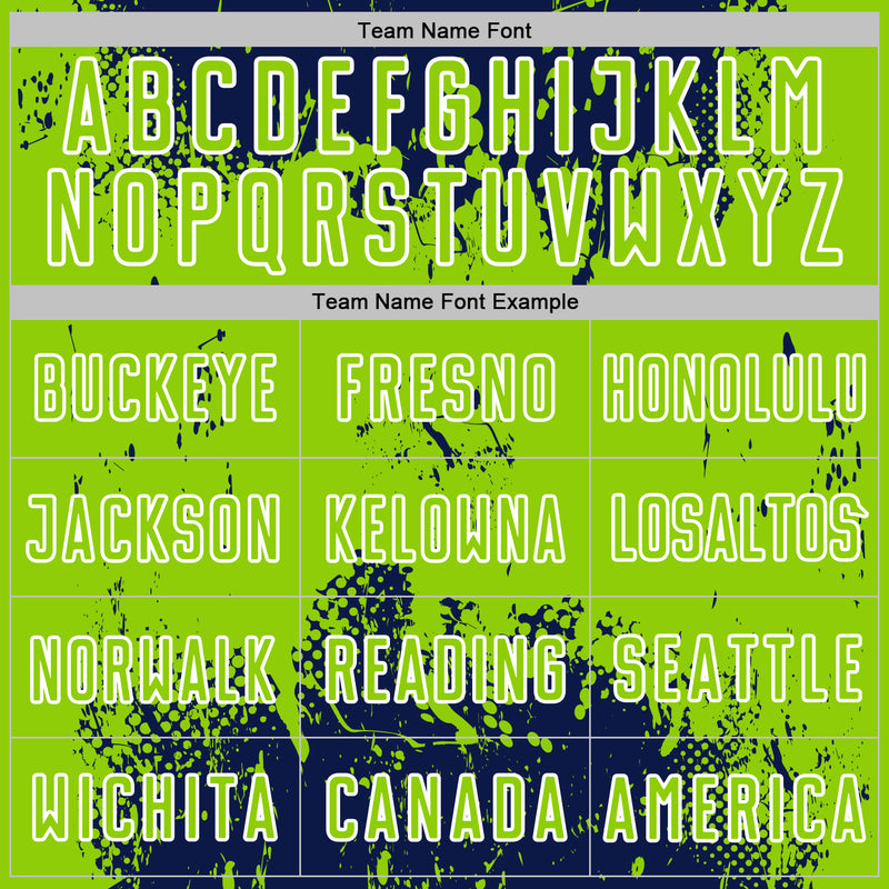 Custom Navy Neon Green-White Abstract Splatter Grunge Art Sports Sublimation Soccer Uniform Jersey