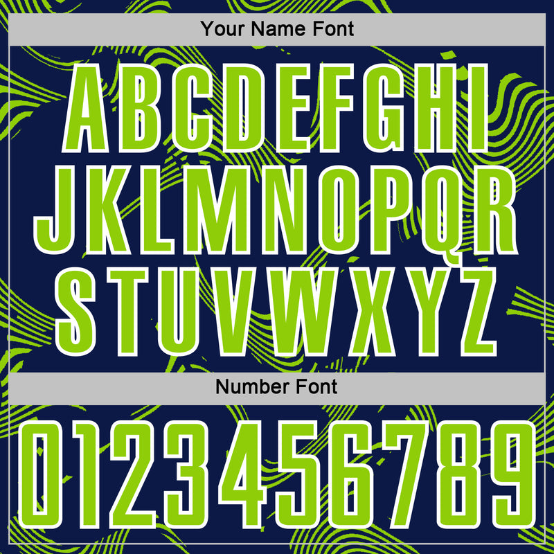 Custom Navy Neon Green-White Curve Lines Sports Sublimation Soccer Uniform Jersey