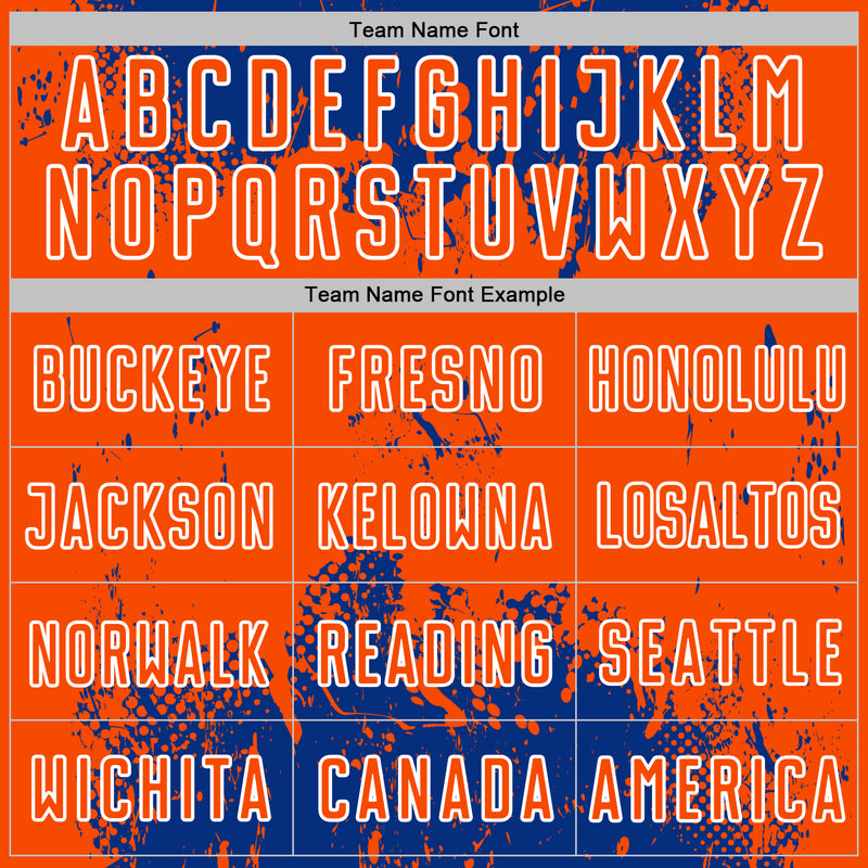 Custom Royal Orange-White Abstract Splatter Grunge Art Sports Sublimation Soccer Uniform Jersey