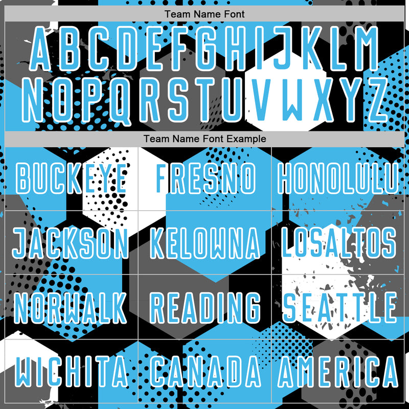 Custom Black Sky Blue-White Geometric Shape Sublimation Soccer Uniform Jersey