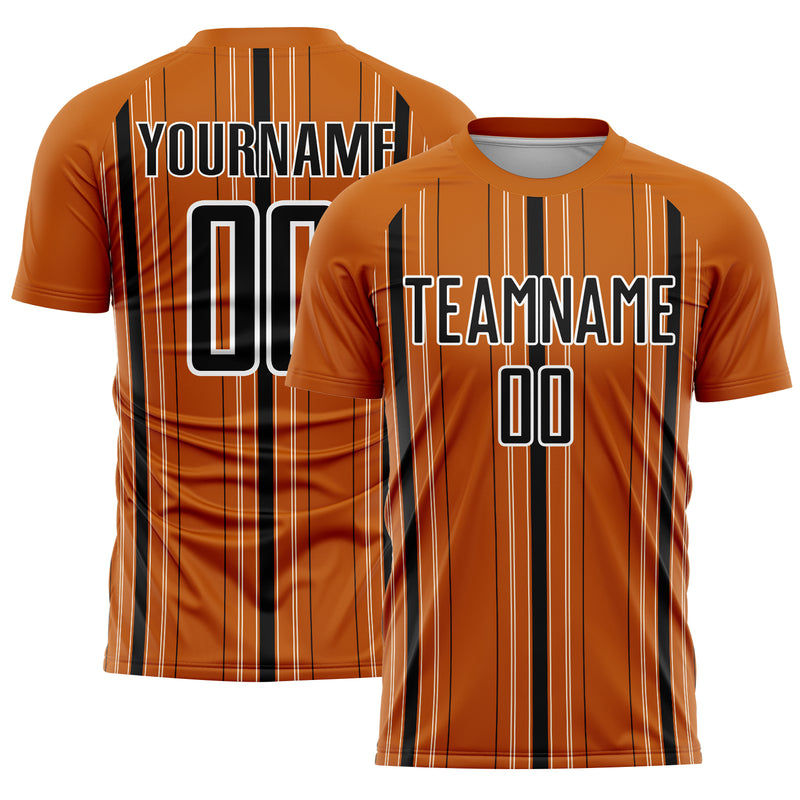 Custom Texas Orange Black-White Stripe Sublimation Soccer Uniform Jersey
