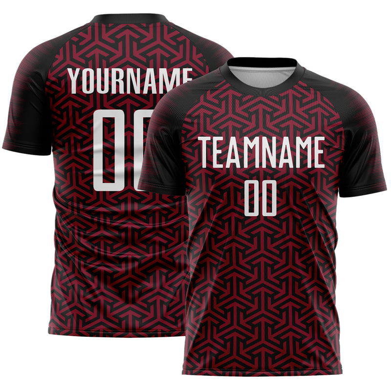 Custom Black White-Crimson Geometric Arrow Sublimation Soccer Uniform Jersey