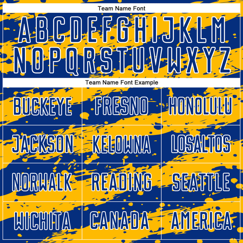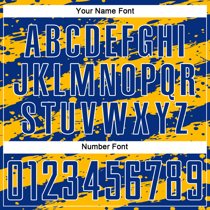 Custom Royal Gold-White Splash Sublimation Soccer Uniform Jersey