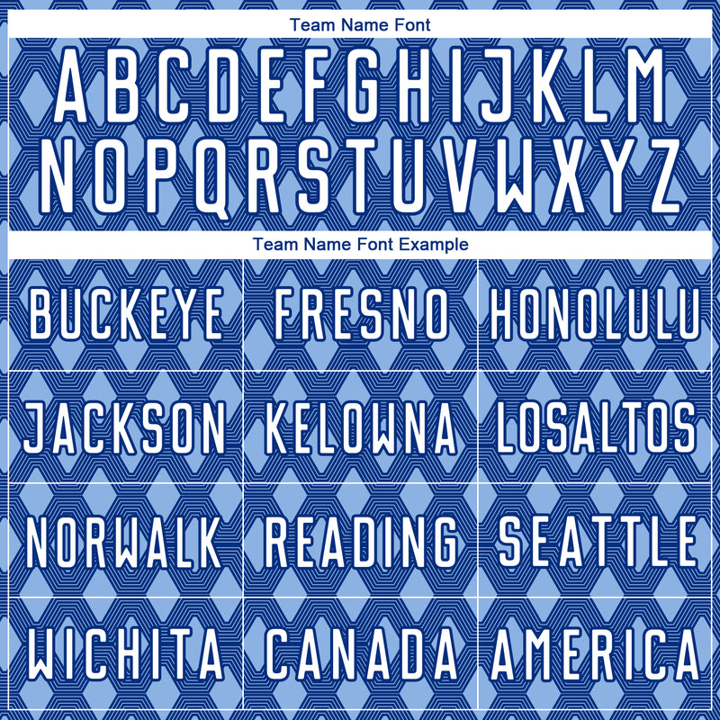 Custom Royal White-Light Blue Geometric Shape Sublimation Soccer Uniform Jersey