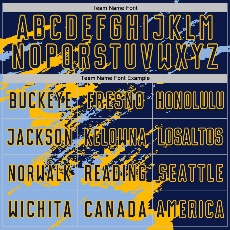 Custom Navy Light Blue-Gold Abstract Fragment Art Splash Sports Sublimation Soccer Uniform Jersey