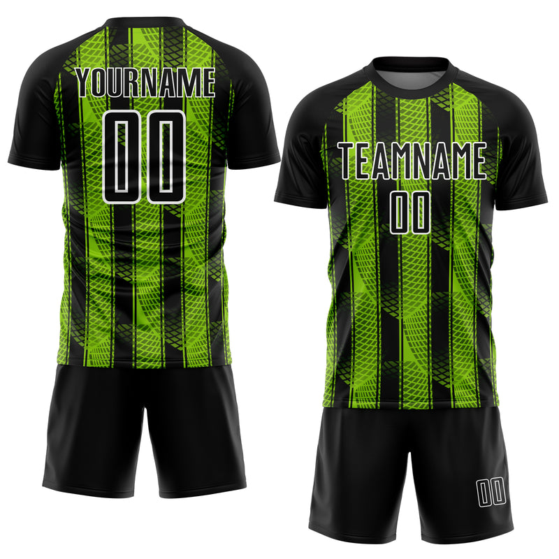 Custom Black Neon Green-White Abstract Network Sublimation Soccer Uniform Jersey