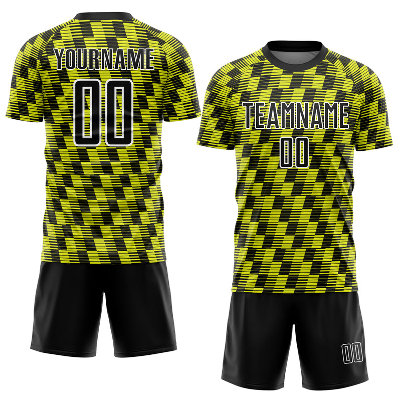 Custom Black Neon Yellow-White Line Sublimation Soccer Uniform Jersey