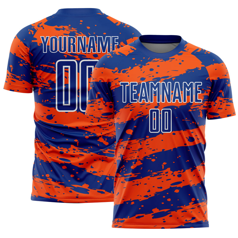 Custom Royal Orange-White Splash Sublimation Soccer Uniform Jersey