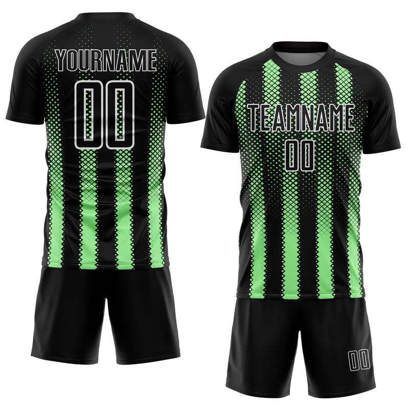 Custom Black Pea Green-White Geometric Shape Sublimation Soccer Uniform Jersey