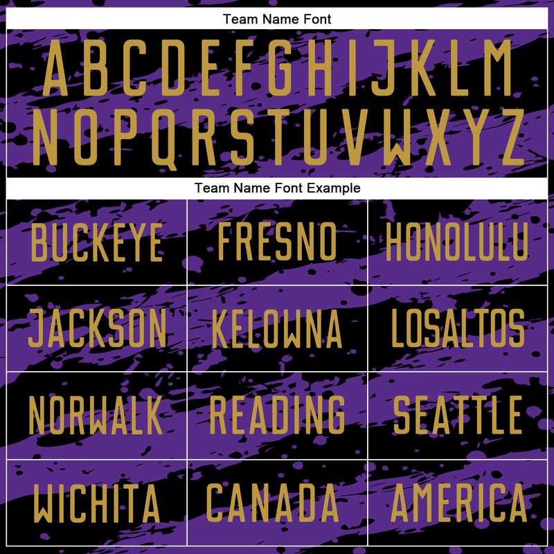 Custom Black Old Gold-Purple Splash Sublimation Soccer Uniform Jersey