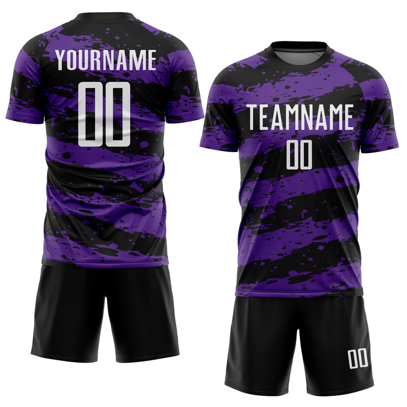 Custom Black White-Purple Splash Sublimation Soccer Uniform Jersey
