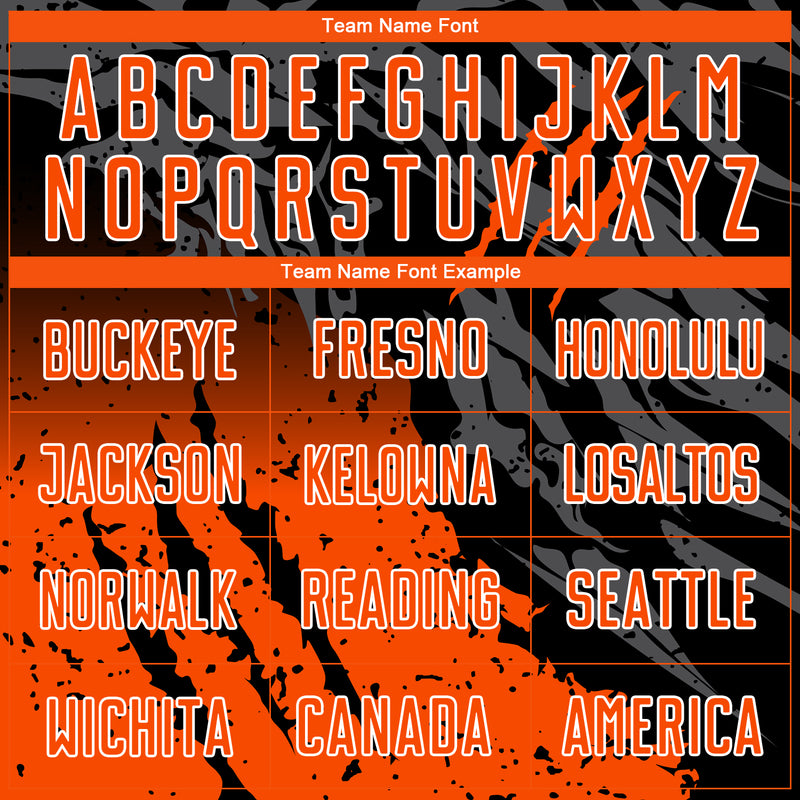 Custom Black Orange-White Gradient Scratch Splash Sublimation Soccer Uniform Jersey