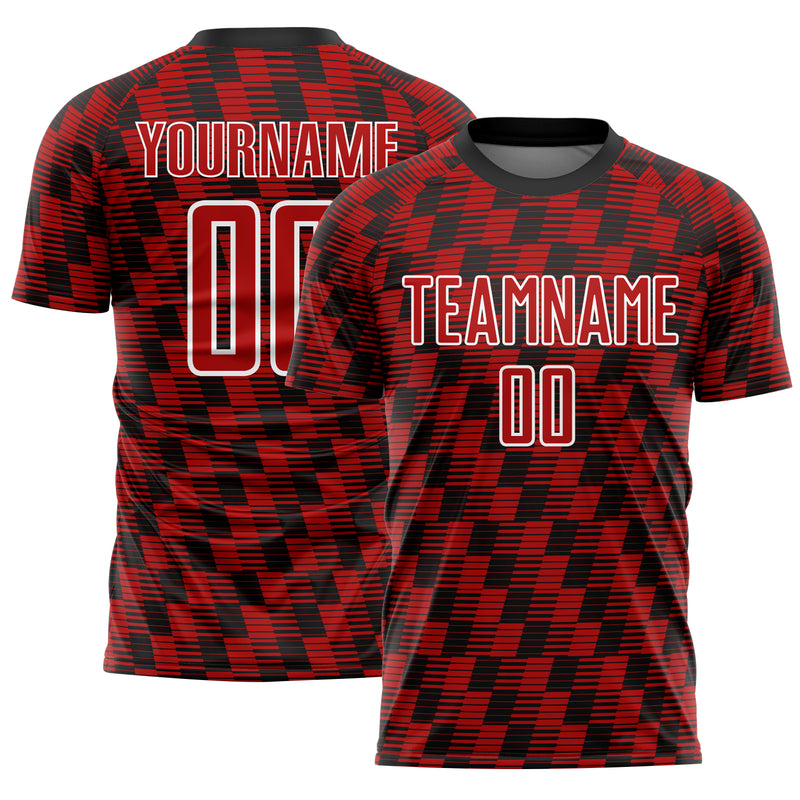Custom Black Red-White Line Sublimation Soccer Uniform Jersey
